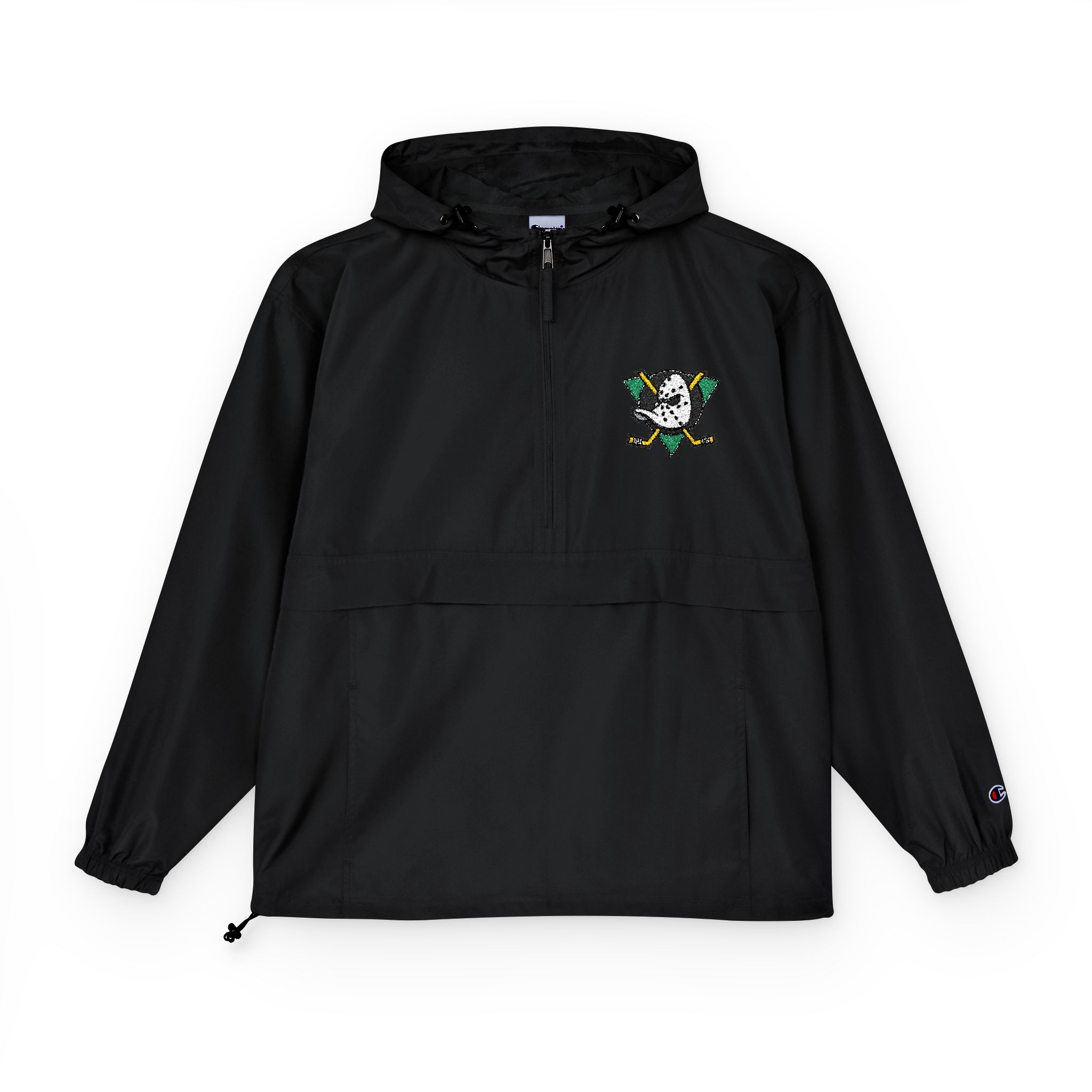 The Champion Packable Anorak Jacket is designed for convenience and protection, featuring a 100% polyester construction with a water-resistant coating to keep you dry.