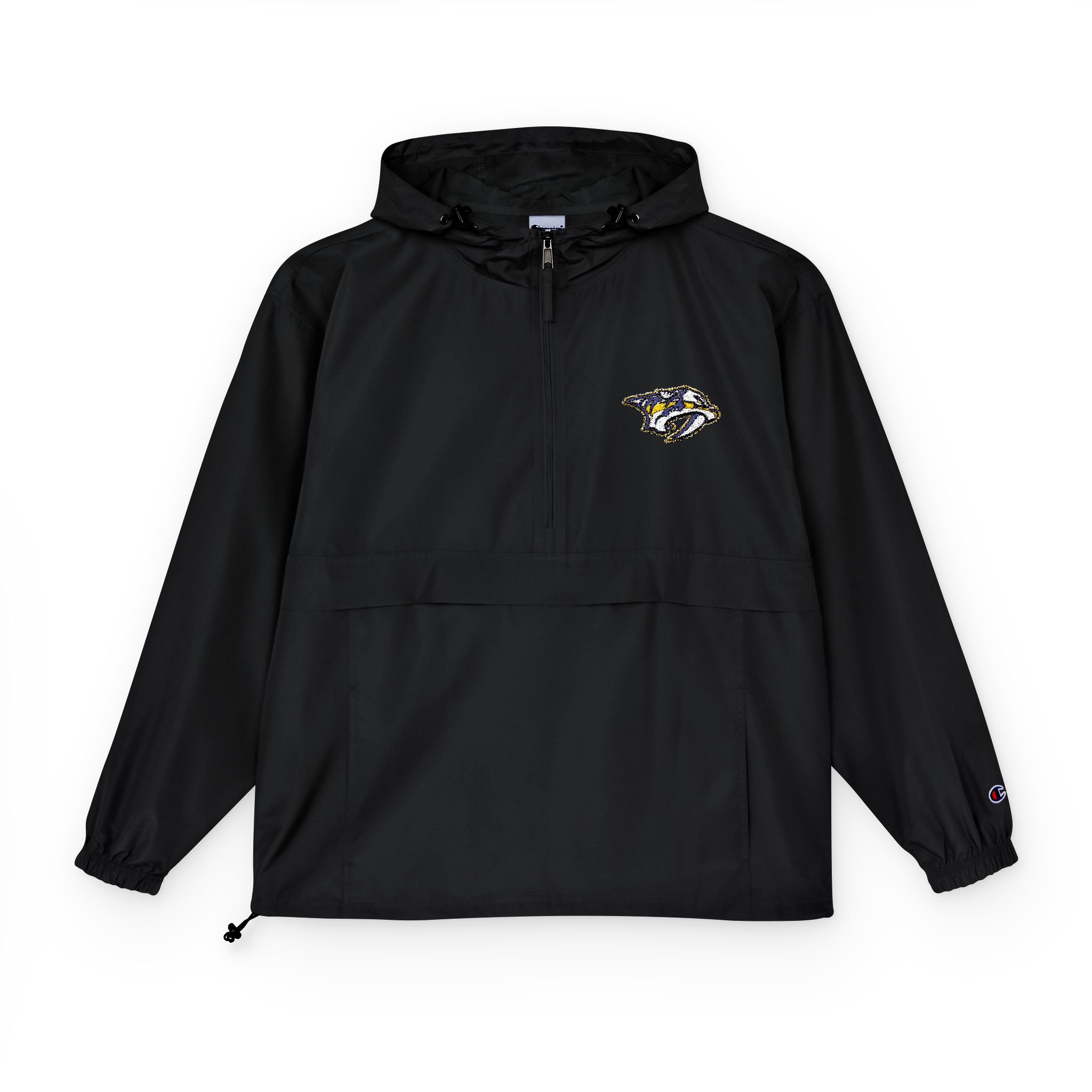 The Champion Packable Anorak Jacket is designed for convenience and protection, featuring a 100% polyester construction with a water-resistant coating to keep you dry.